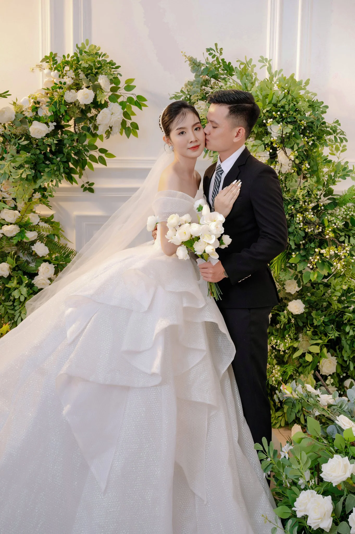10. Tạo dáng chú rể hôn nhẹ lên trán cô dâu