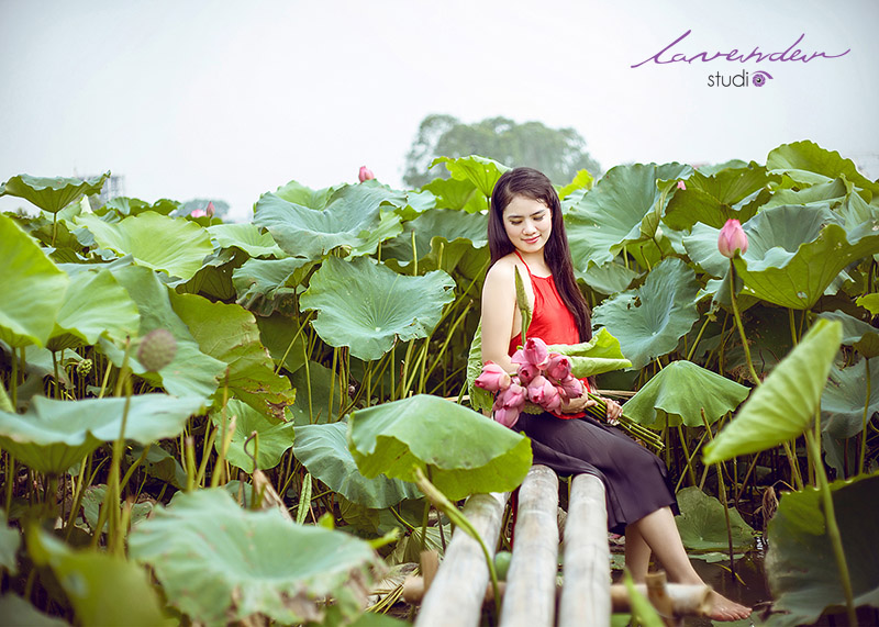 Chụp ảnh áo dài với hoa sen tại Lavender Studio